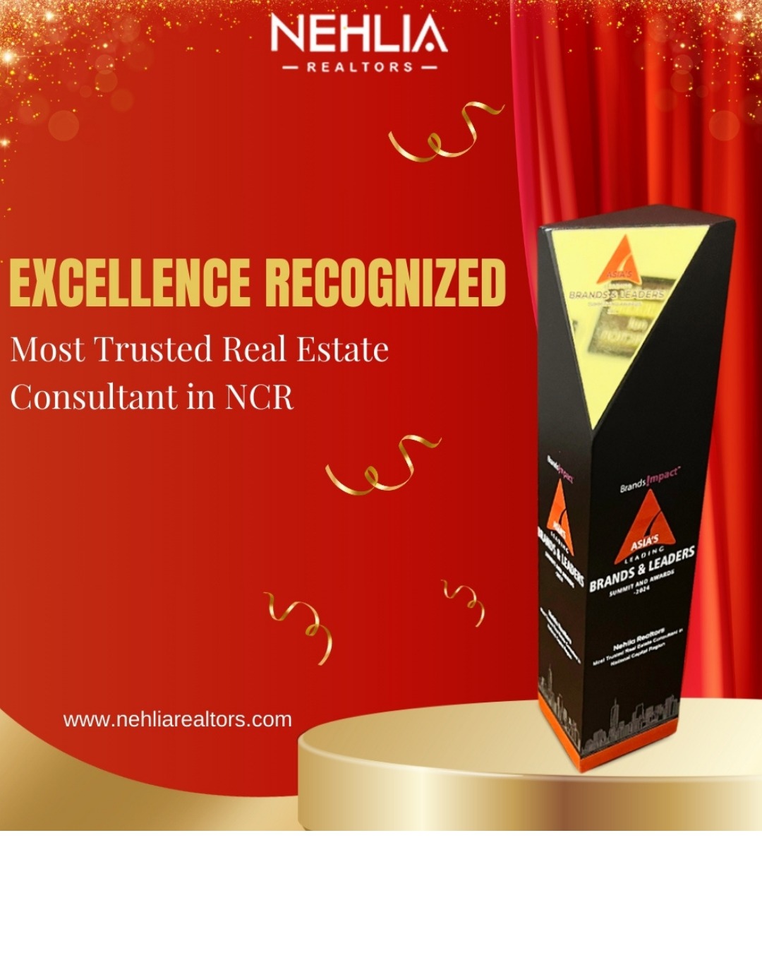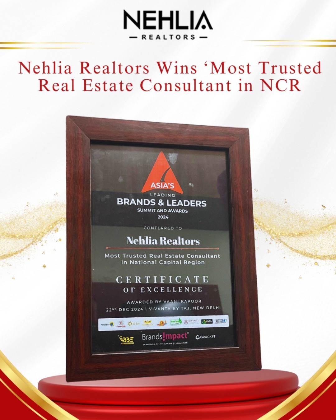 Awarded as the Most Trusted Real Estate Consultant in National Capital Region – Nehlia Realtors at Asia’s Leading Brands & Leaders Summit and Awards 2024