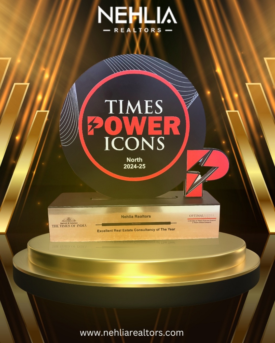 Awarded as the Excellent Real Estate Consultancy of the Year (2024–25) – Nehlia Realtors at Times Power Icons North 2024–25