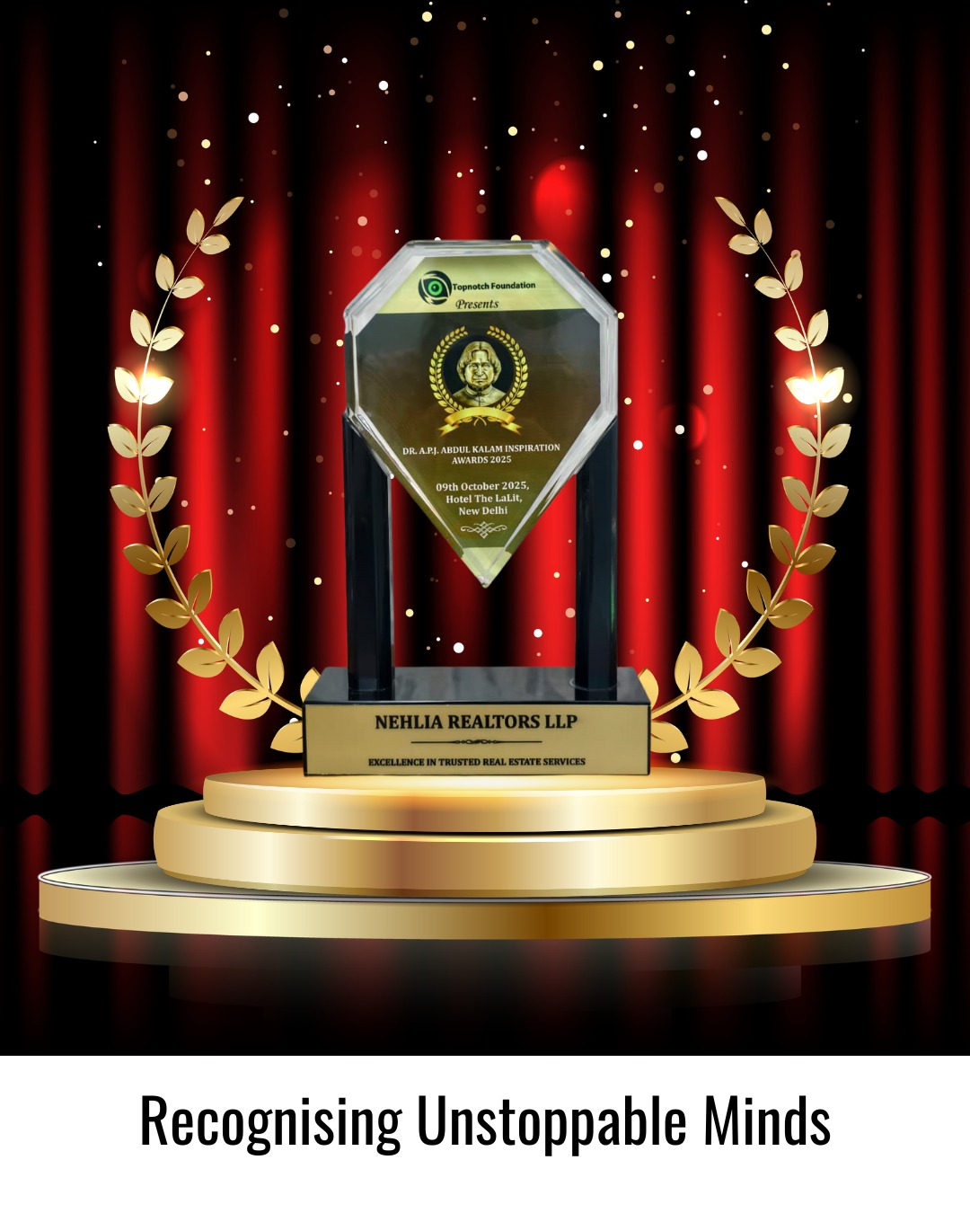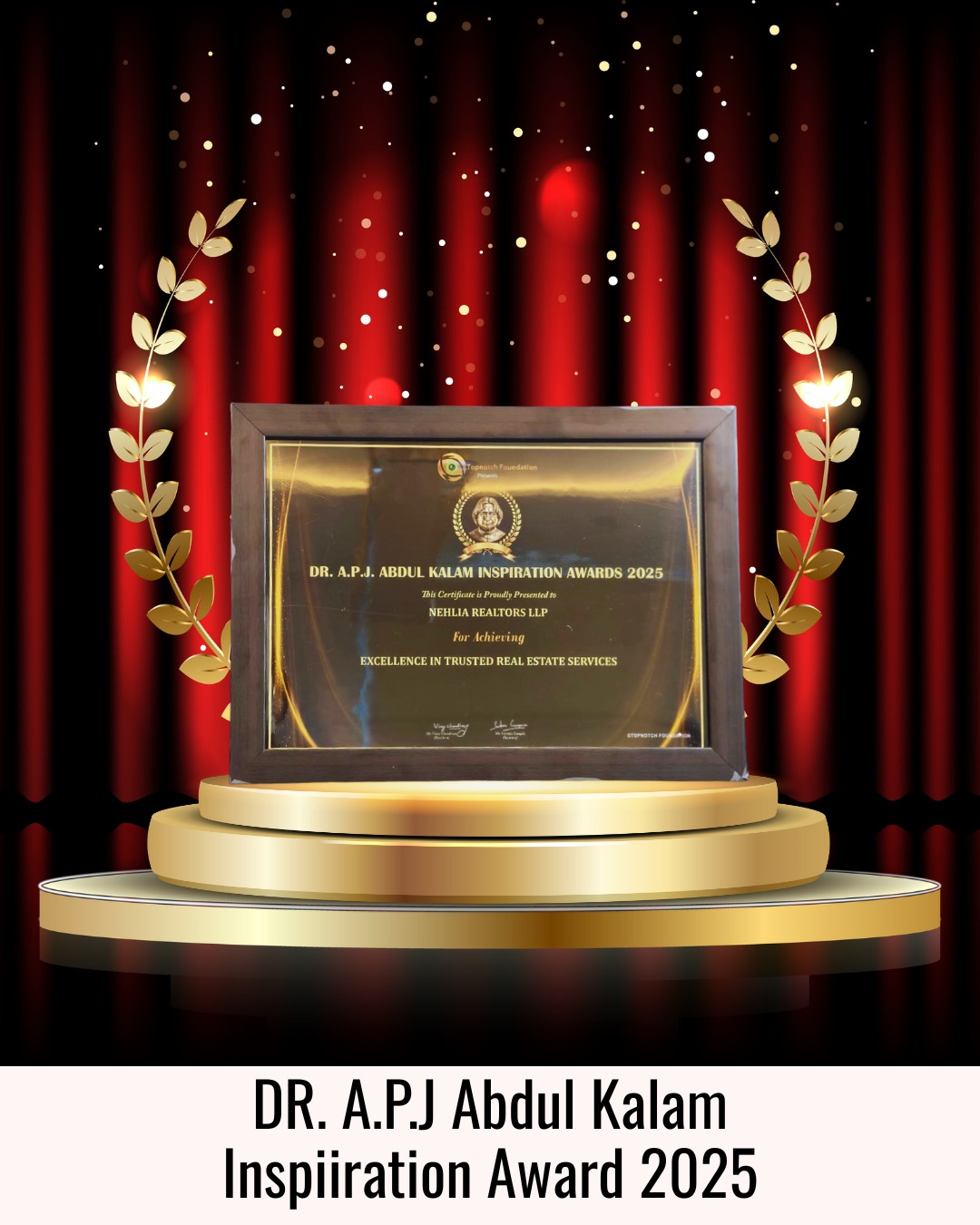 Awarded with the Dr. A.P.J. Abdul Kalam Inspiration Award 2025 – Nehlia Realtors LLP for Excellence in Trusted Real Estate Services